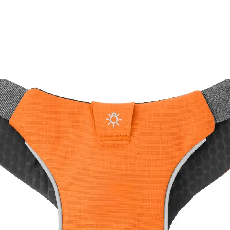 - Harness: 420 denier nylon ripstop, Closed-cell foam, 75 denier polyester lining with heat emboss and DWR (Durable Water Repellent) finish, Nylon webbing, Webbing adjusters