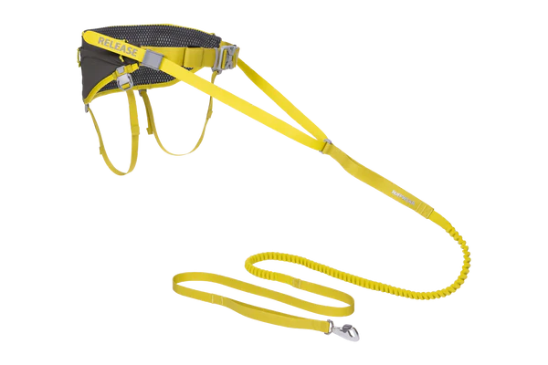 The hip belt has adjustable (and removable) leg straps that help keep the belt in place during your joring activities. A central side-release buckle makes for easy on/off and a separate quick-release tow strap connects to the towline.